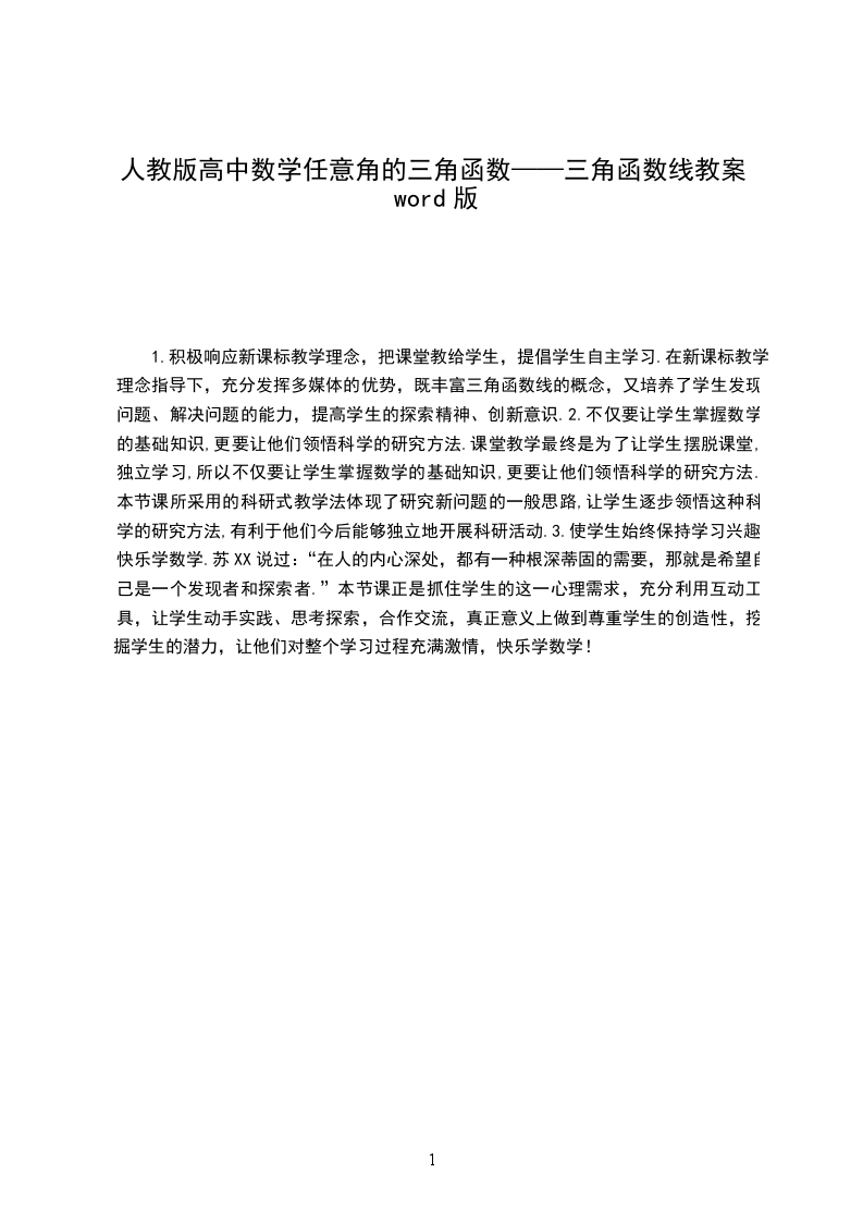 1.设是一个任意角,在的终边上任取(异于原点的)一点P(_,y)则P与原点的距离