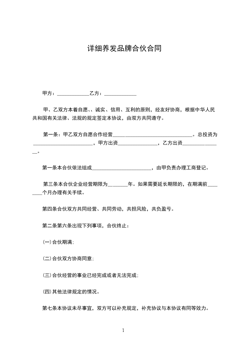 详细养发品牌合伙合同