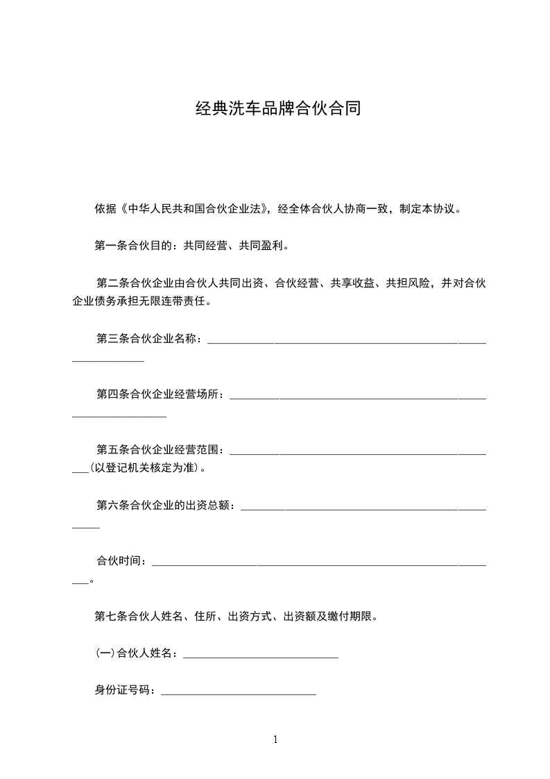 第一条合伙目的:共同经营、共同盈利。