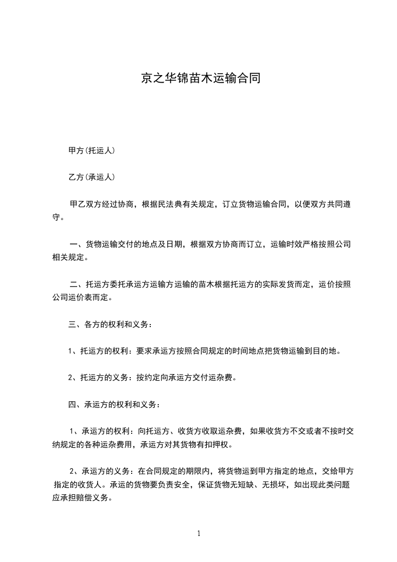 根据《中华人民共和国民法典》及国家有关运输规定,经过双方充分协商,特订立本合同,以便双方共同遵守。