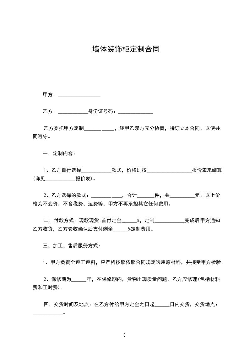 二、付款方式:现款现货;首付定金______%,定制____________完成后甲方通知乙方收货,乙方验收确认后支付剩余______%定制费用。