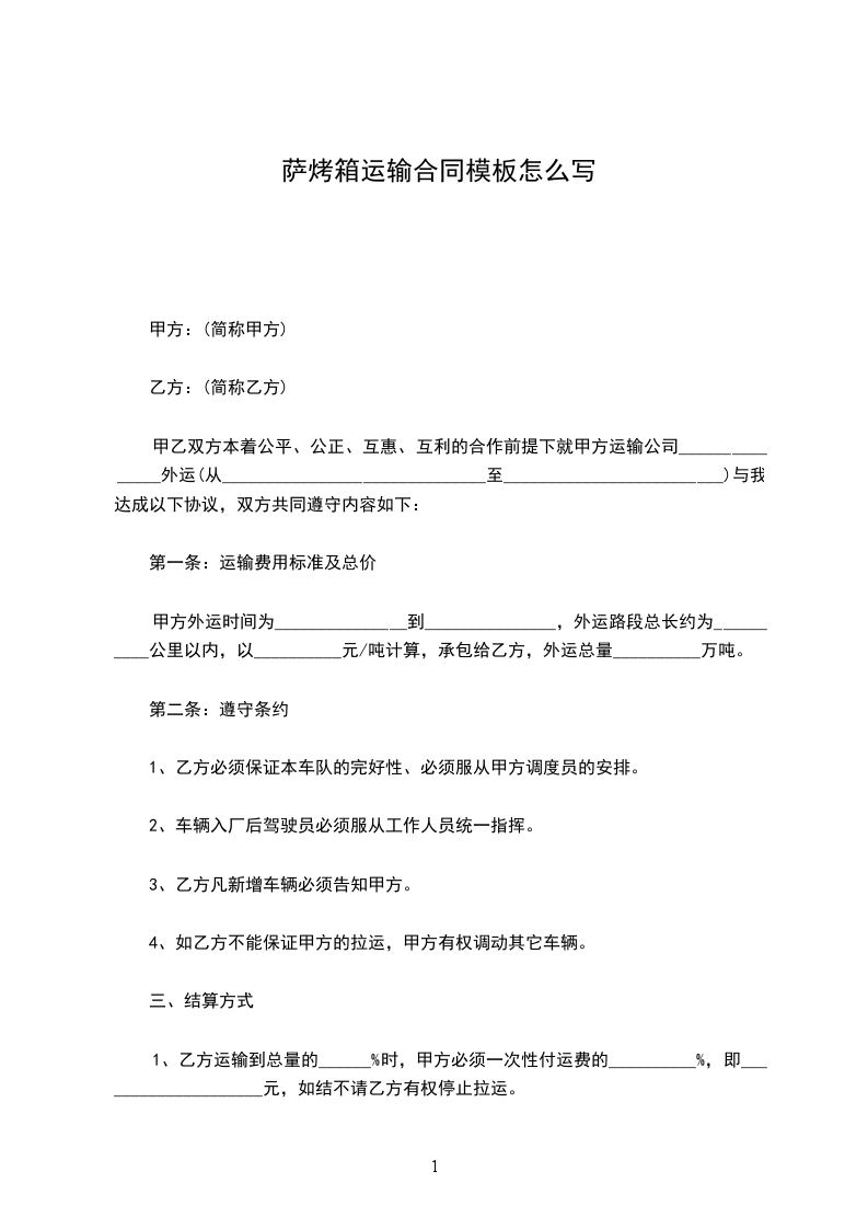 一、合同期,从________________________起到__________________运完为止。