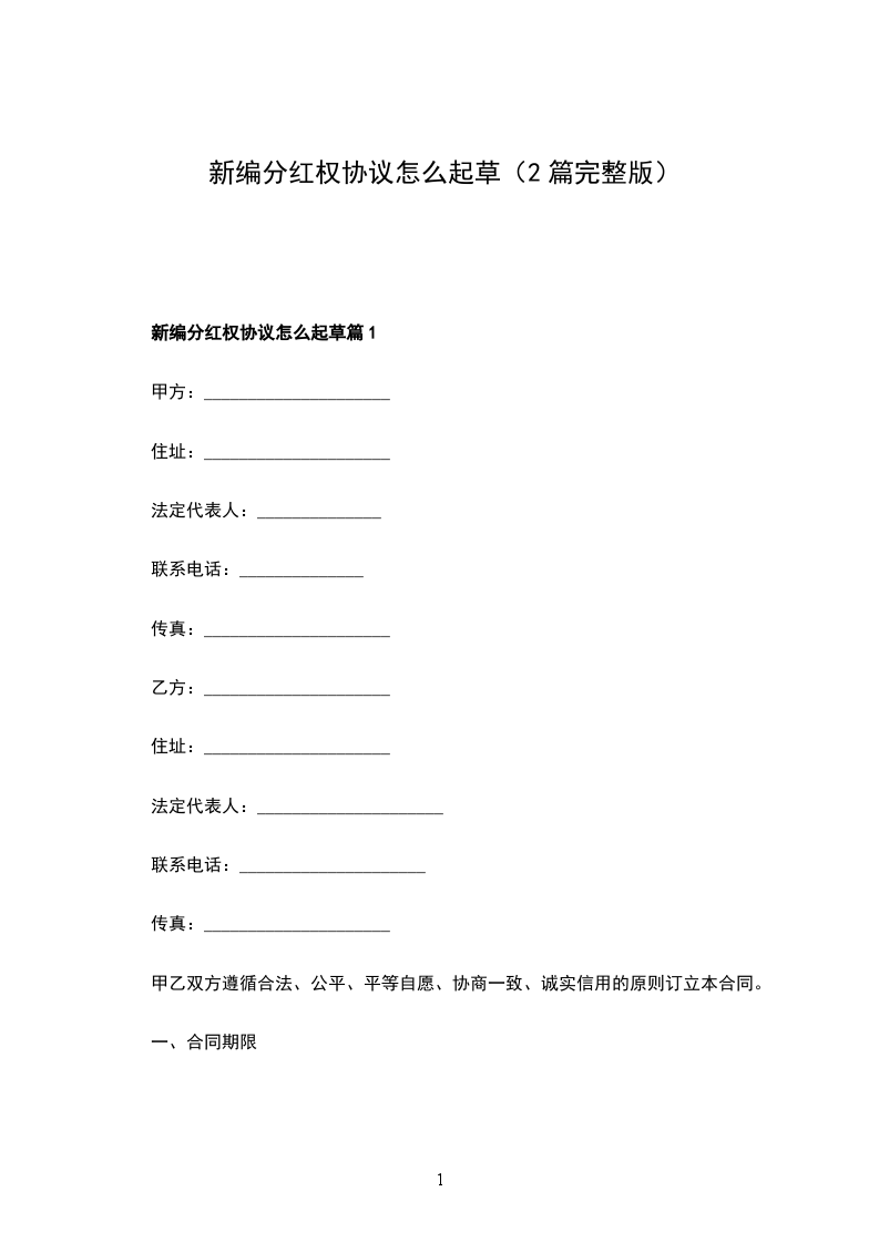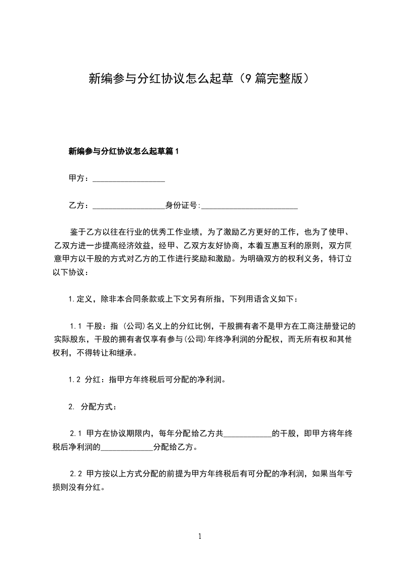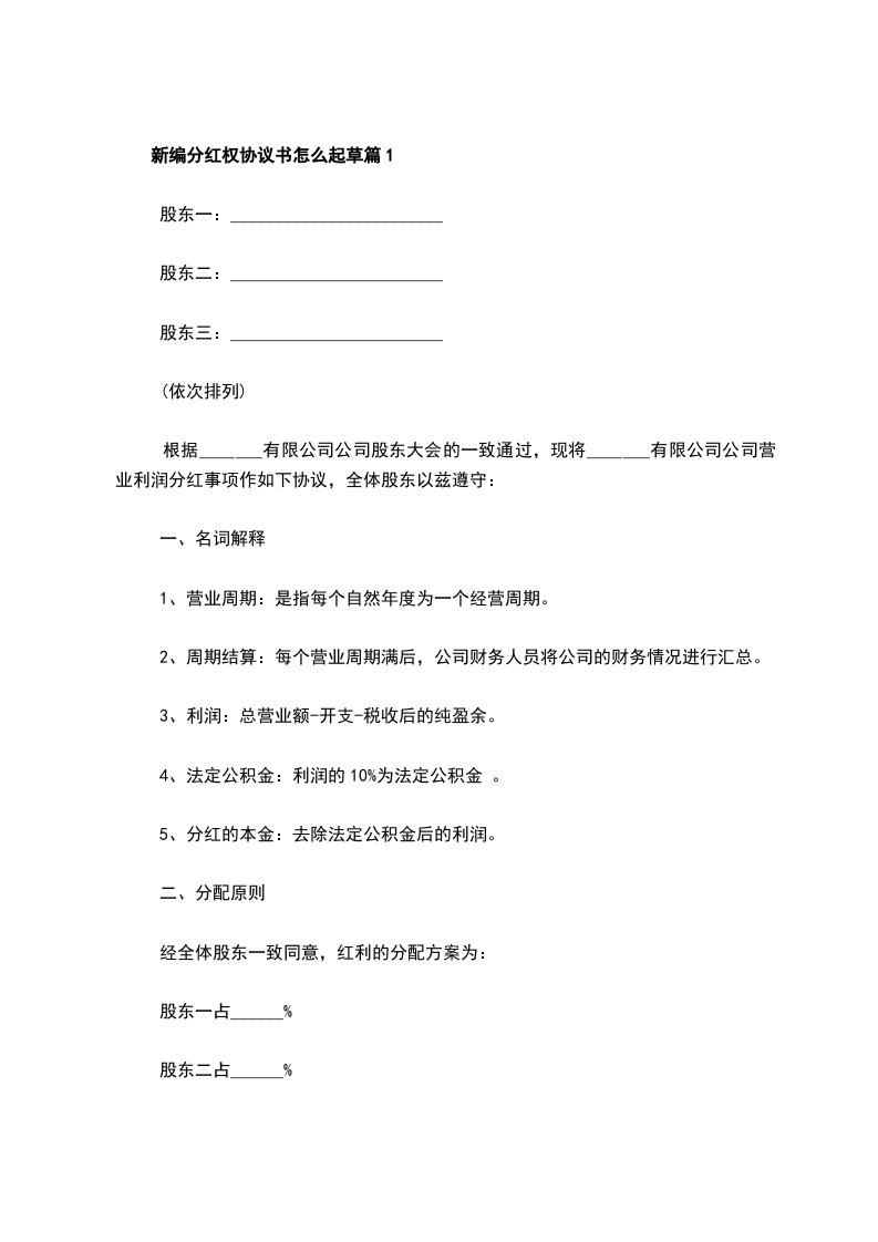 新编分红权协议书怎么起草篇1