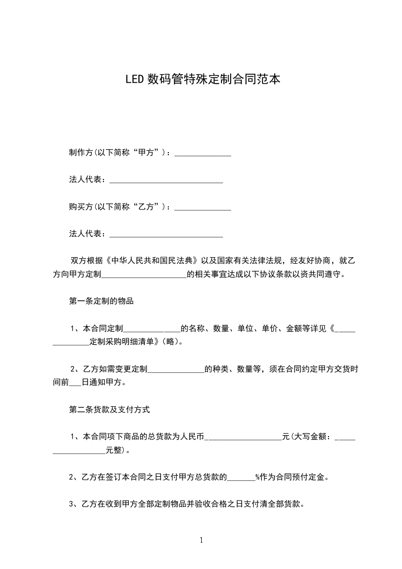 经双方洽谈,根据《中华人民共和国民法典》有关规定,特签订以下合同: