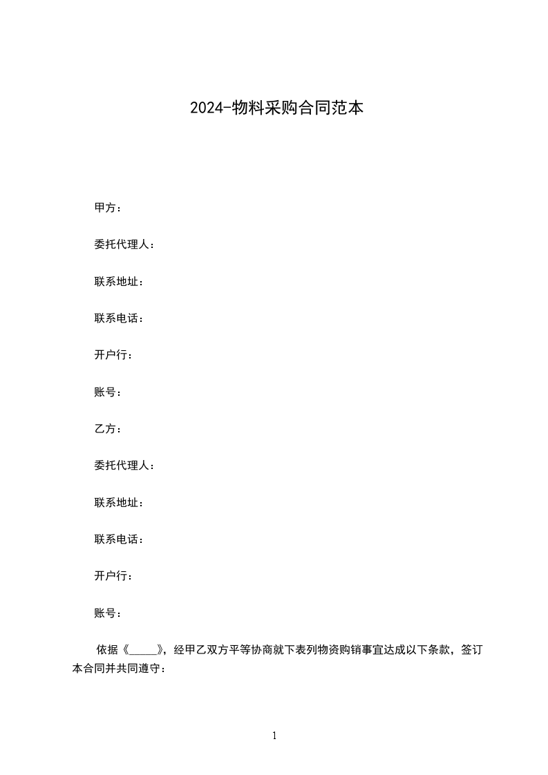 依据《_____》,经甲乙双方平等协商就下表列物资购销事宜达成以下条款,签订本合同并共同遵守: