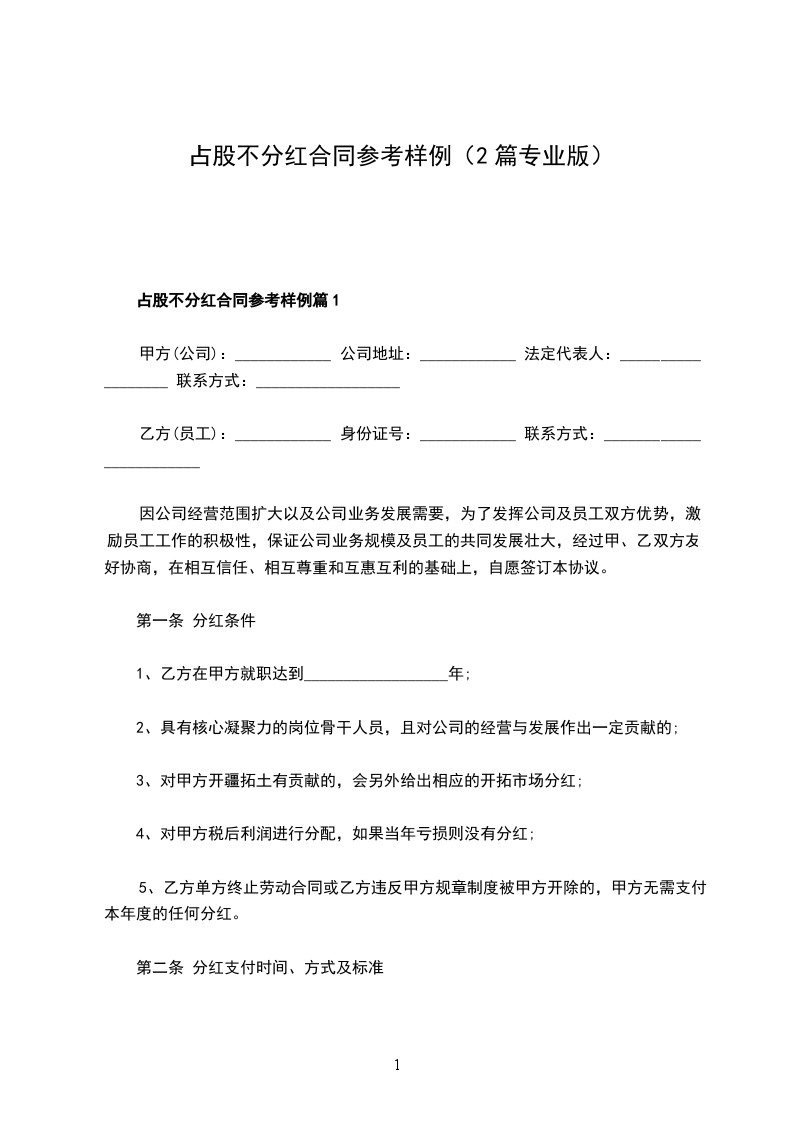 占股不分红合同参考样例篇1
