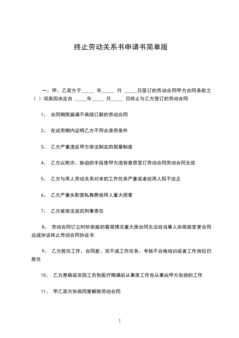 一、甲、乙双方于_____ 年_____ 月 _____日签订的劳动合同甲方合同条款之( )项原因决定自 _____年_____ 月_____ 日终止与乙方签订的劳动合同