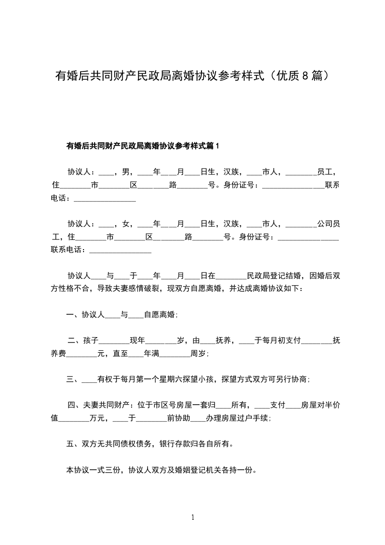 有婚后共同财产民政局常用离婚协议书怎么拟篇8