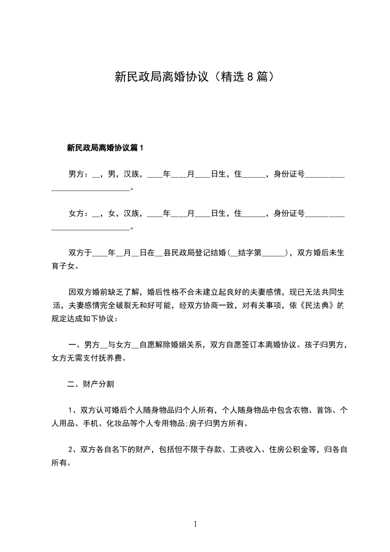 男女双方于_______年_______月_______日在_______民政局(办)办理结婚登记手续。_______年_______月_______日生育一子(女)_______(身份证号:______________)。因协议人双方性格不合,夫妻感情破裂,无法继续共同生活,已无和好可能。现双方就自愿离婚一事达成如下协议: