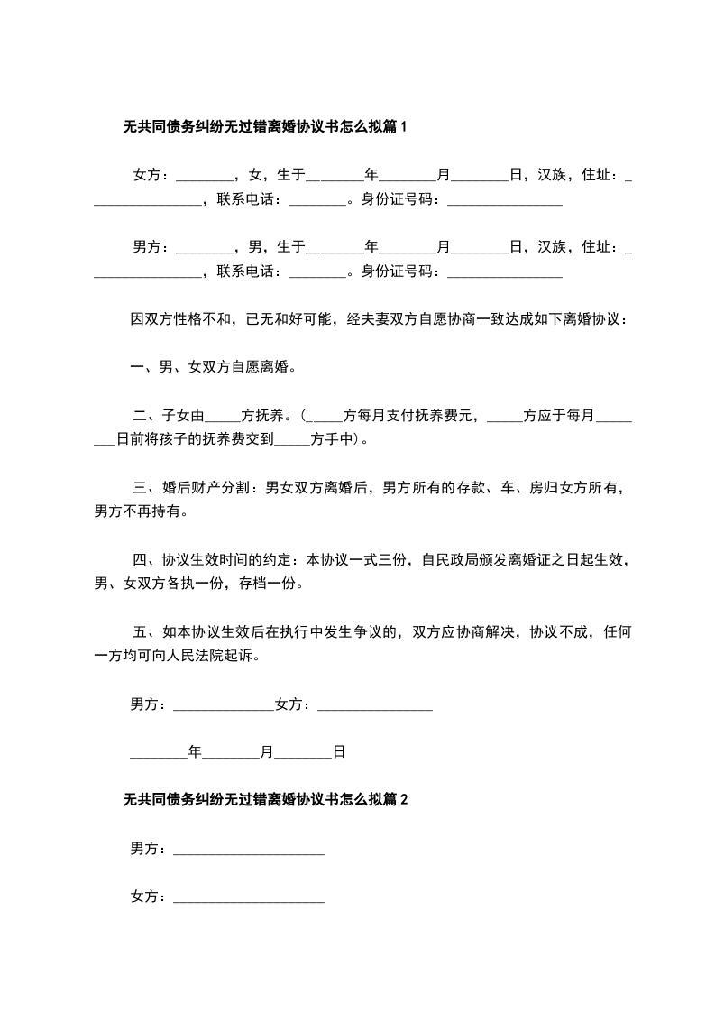 无共同债务纠纷夫妻协商协议离婚范本怎么拟篇2