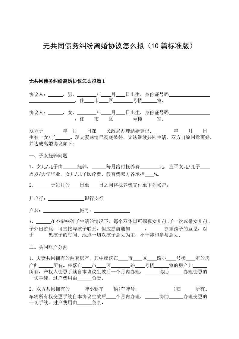 无共同债务纠纷夫妻协商协议离婚范本怎么拟篇10