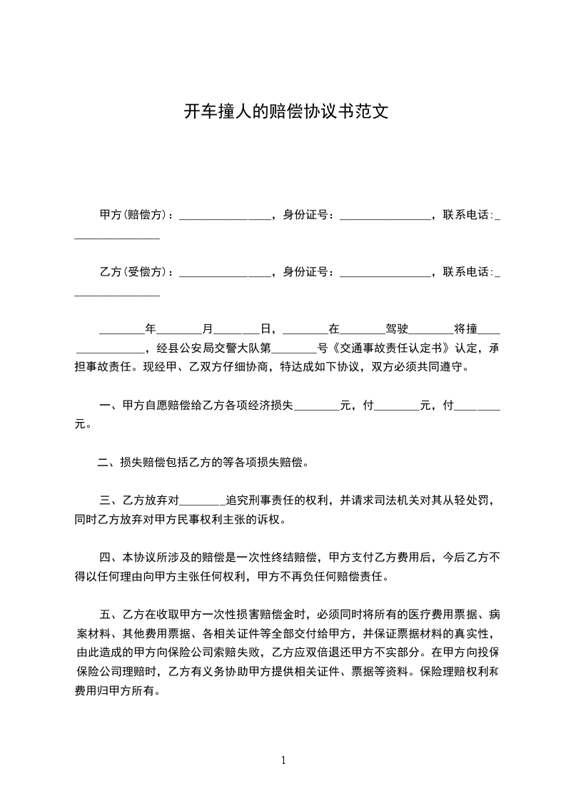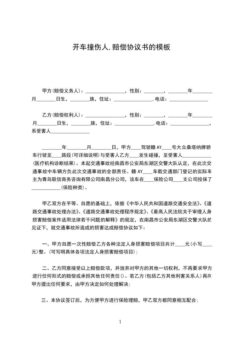 一、甲方自愿赔偿给乙方各项损失共计元人民币(包括已经支付的元)。