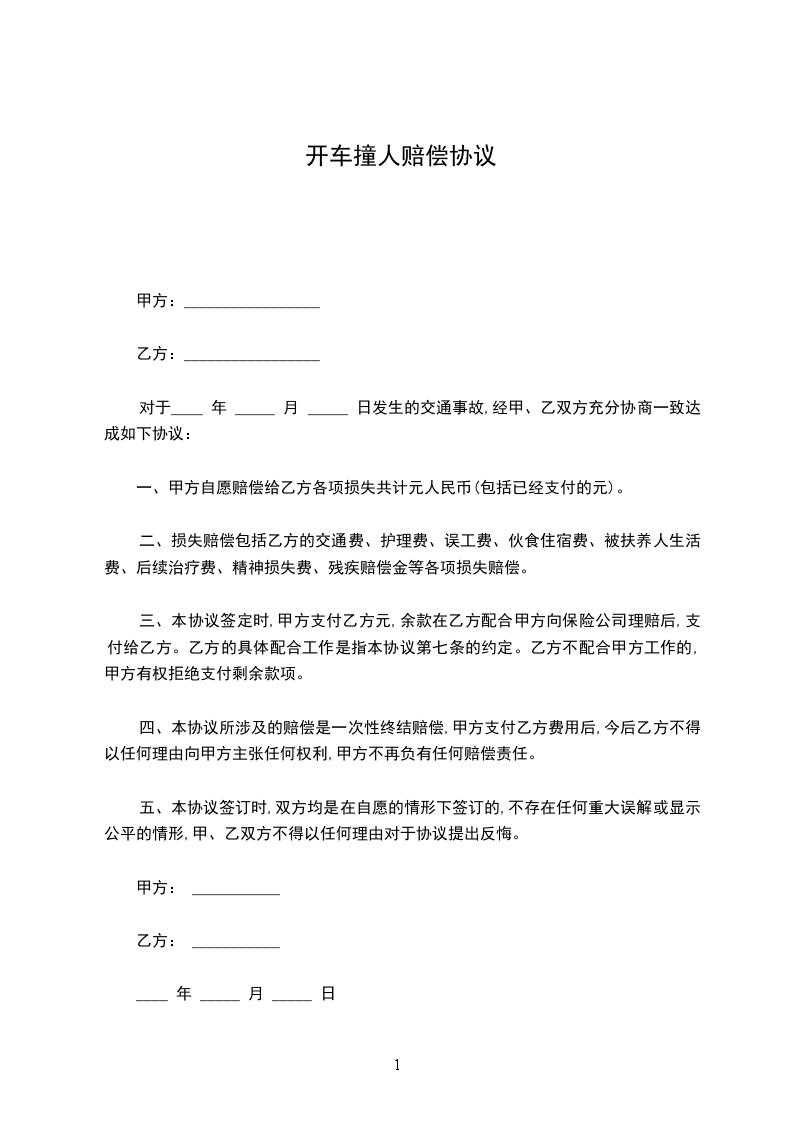 四、本协议所涉及的赔偿是一次性终结赔偿,甲方支付乙方费用后,今后乙方不得以任何理由向甲方主张任何权利,甲方不再负有任何赔偿责任。