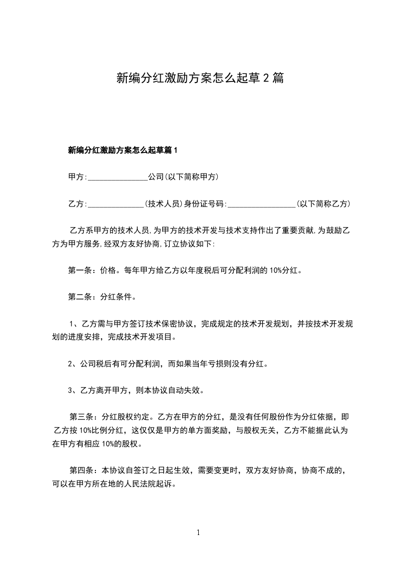 新编分红激励方案怎么起草篇1
