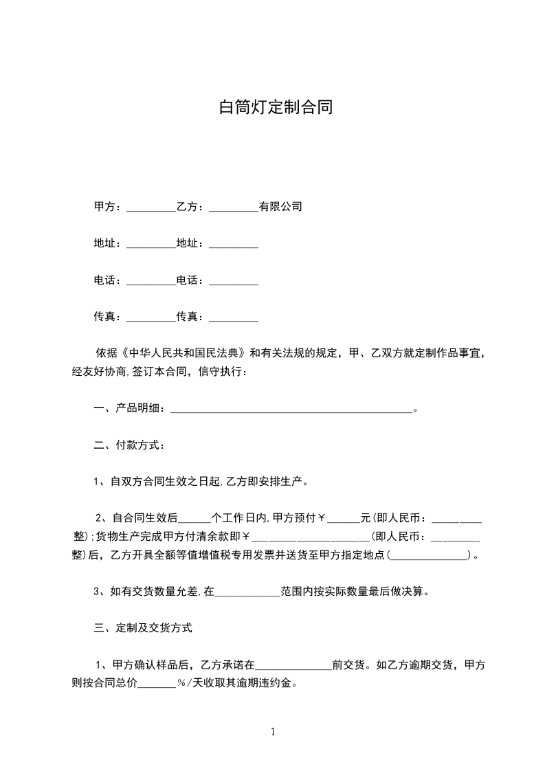 8W筒灯定制合同