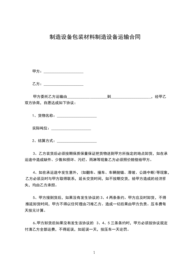 制造设备包装材料制造设备运输合同