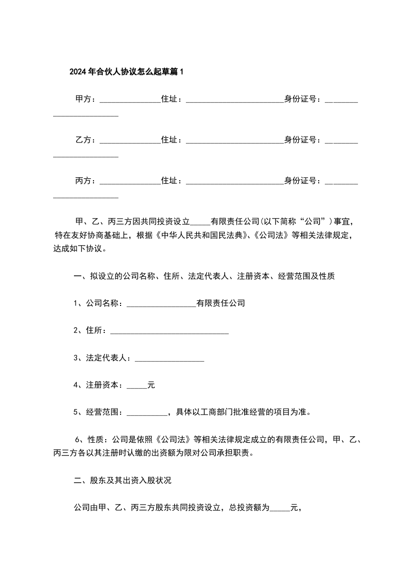 2024年合伙人协议怎么起草篇1