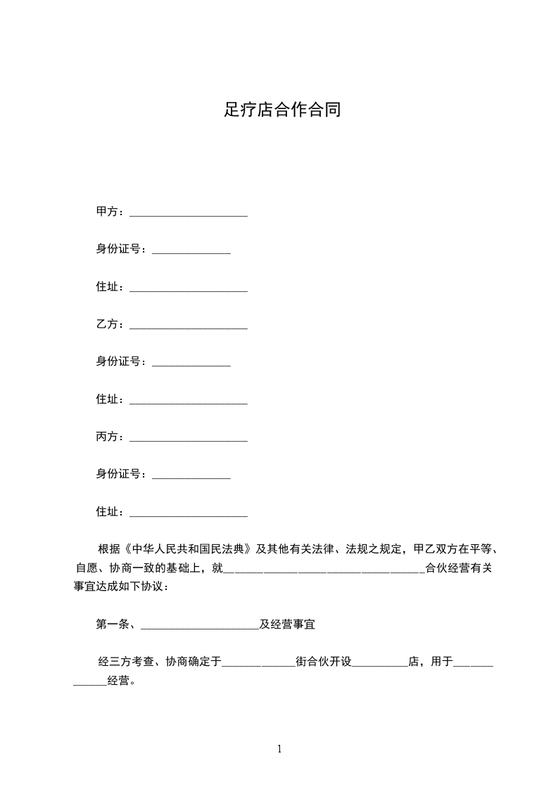 第六条足疗加盟店 足疗加盟店应当注册为_,并以其名义履行本合同。 足疗加盟店的选址应当进行商圈调查和评估,并符合规定的条件,其营业面积应当在_平方米至_平方米之间,与其他足疗加盟店之间的直线距离不得少 _。 足疗加盟店应当根据规定的要求进行装修,经分部验收合格方可投入用法。足疗加盟店用法总部统一设计(制作)的招牌,费用由_担当。
