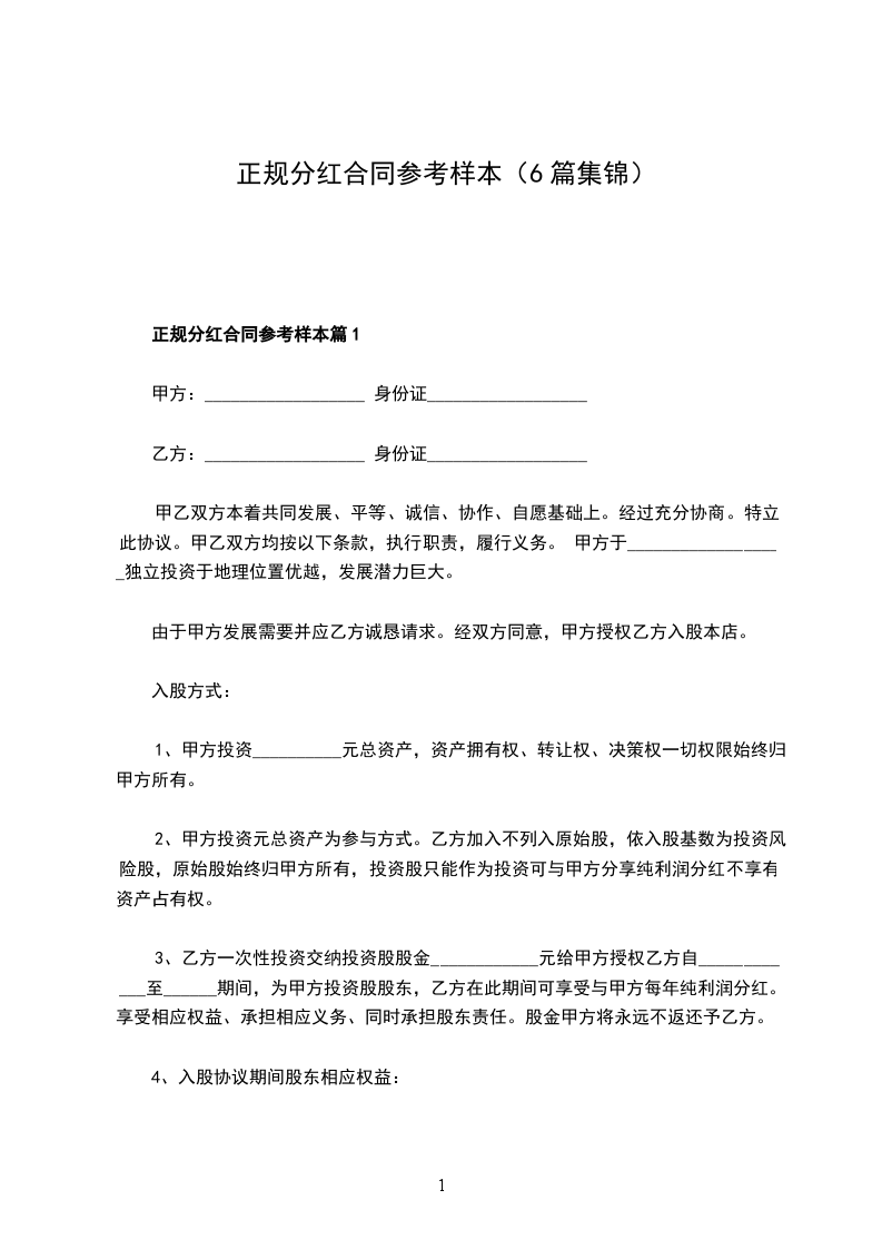 正规分红合同参考样本篇1