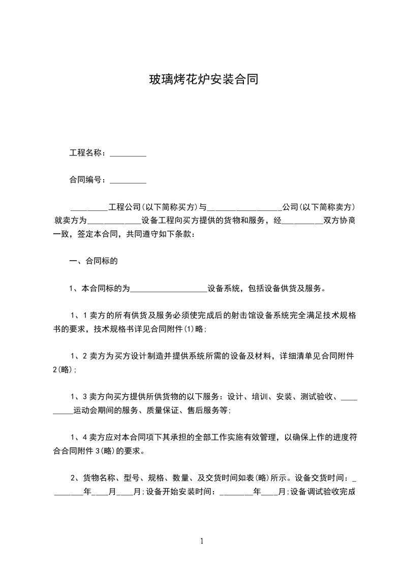 1、本合同标的为___________________设备系统,包括设备供货及服务。