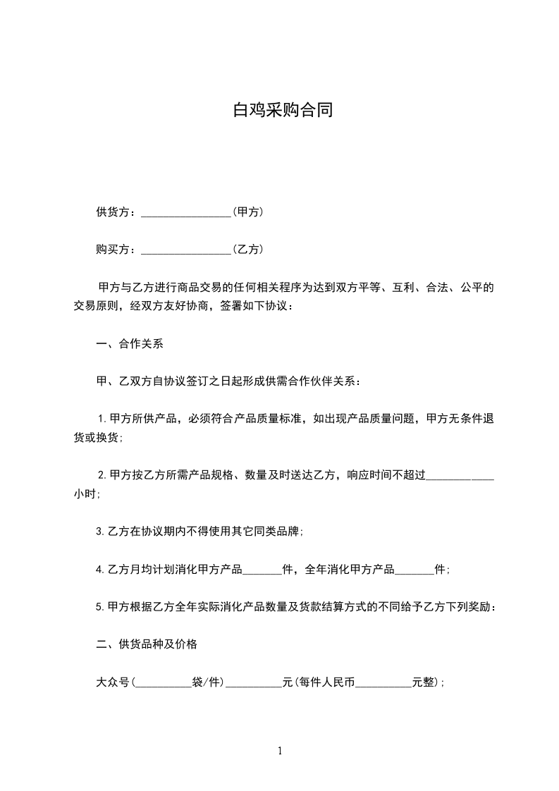 第一条、甲方按下表所列要求供货给乙方饮料:总计金额:______________________。