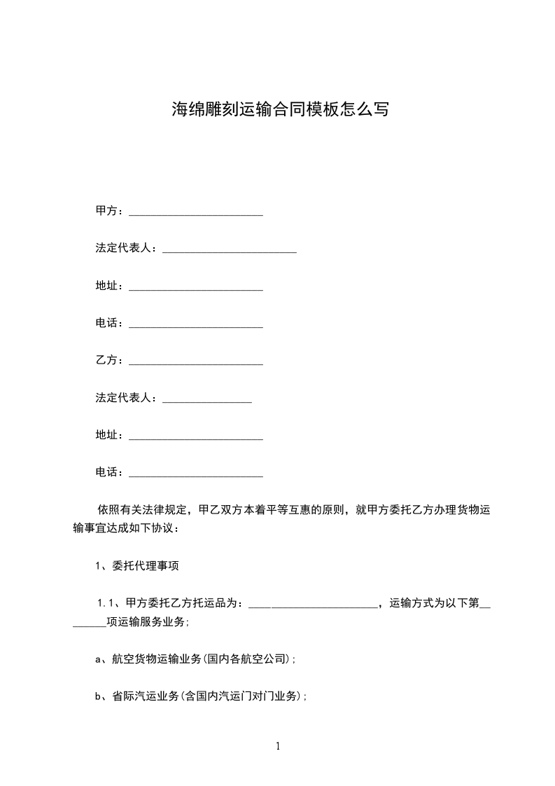 海绵雕刻安装合同