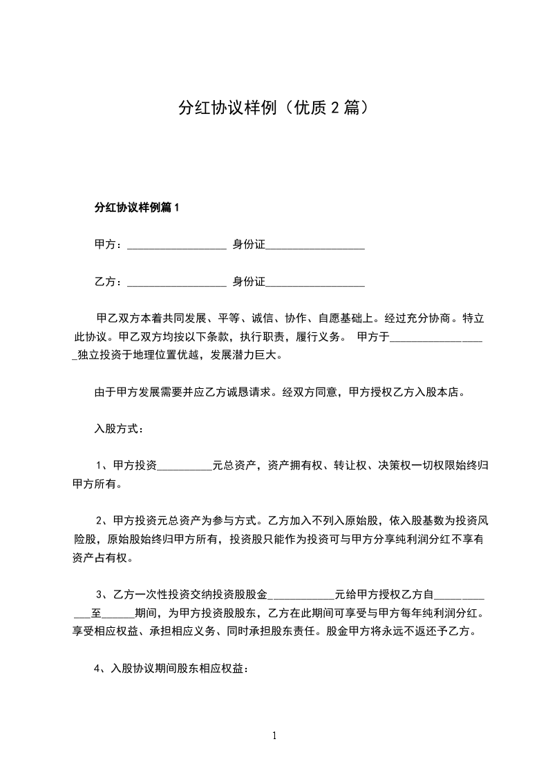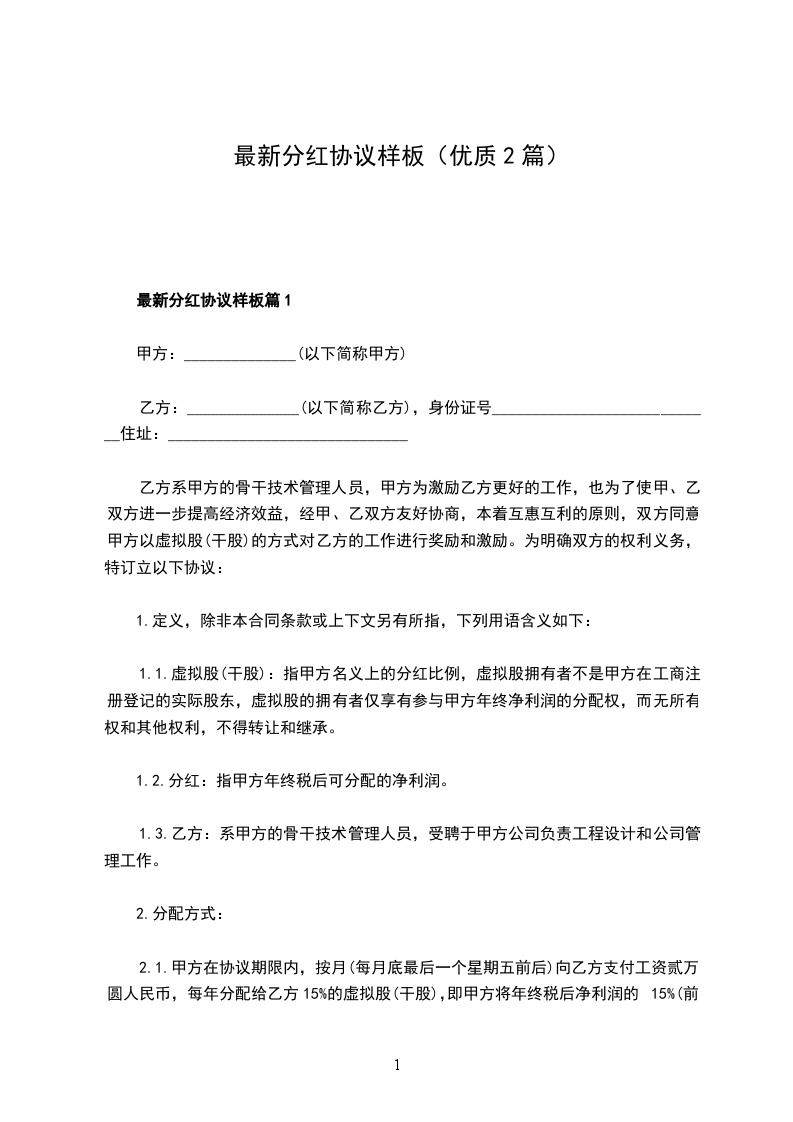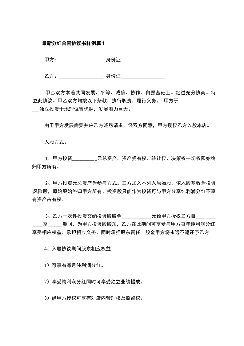 (1)本协议仅对合伙期间分红有效,合伙终止时不再有效。