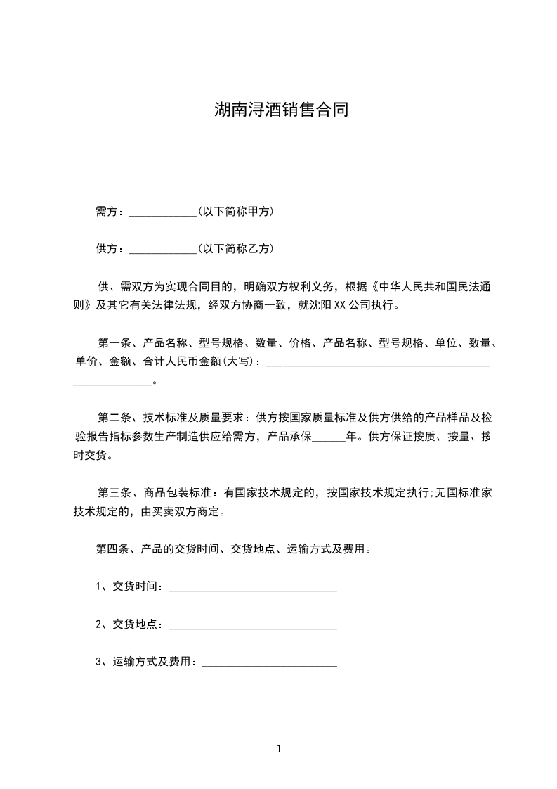 第一条、产品名称、型号规格、数量、价格、产品名称、型号规格、单位、数量、单价、金额、合计人民币金额(大写):______________________________________________________。