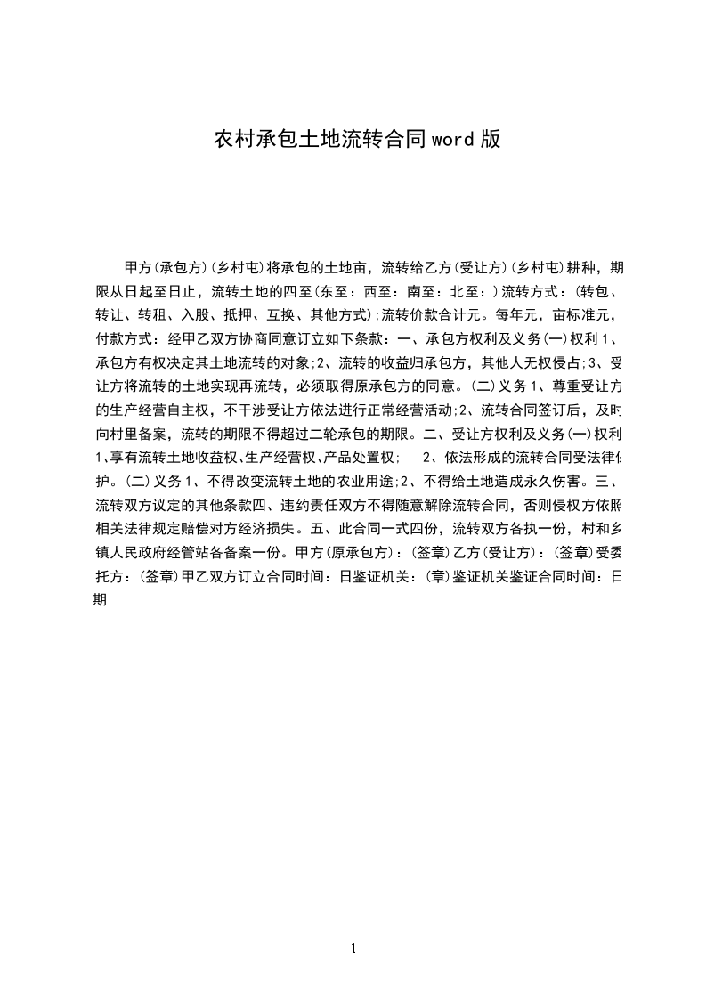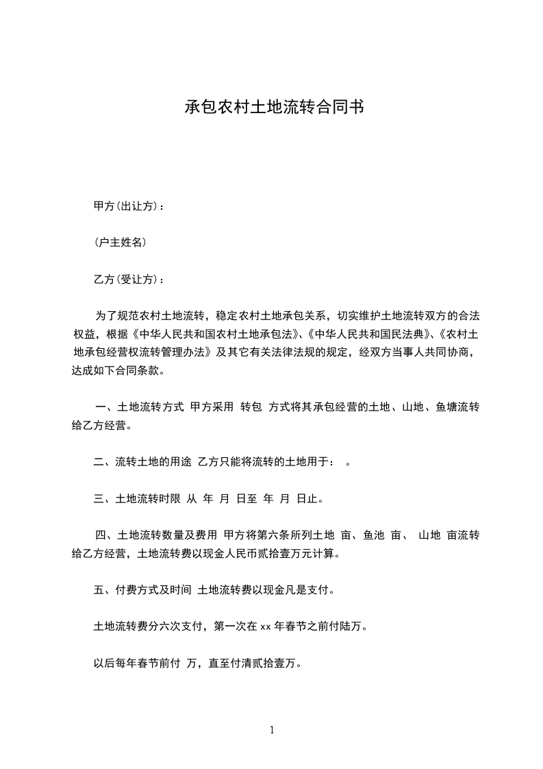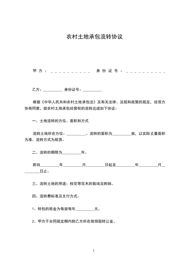 一、承包___________________土地面积共为_____________亩,四至界限为东至_________________北至_________________。