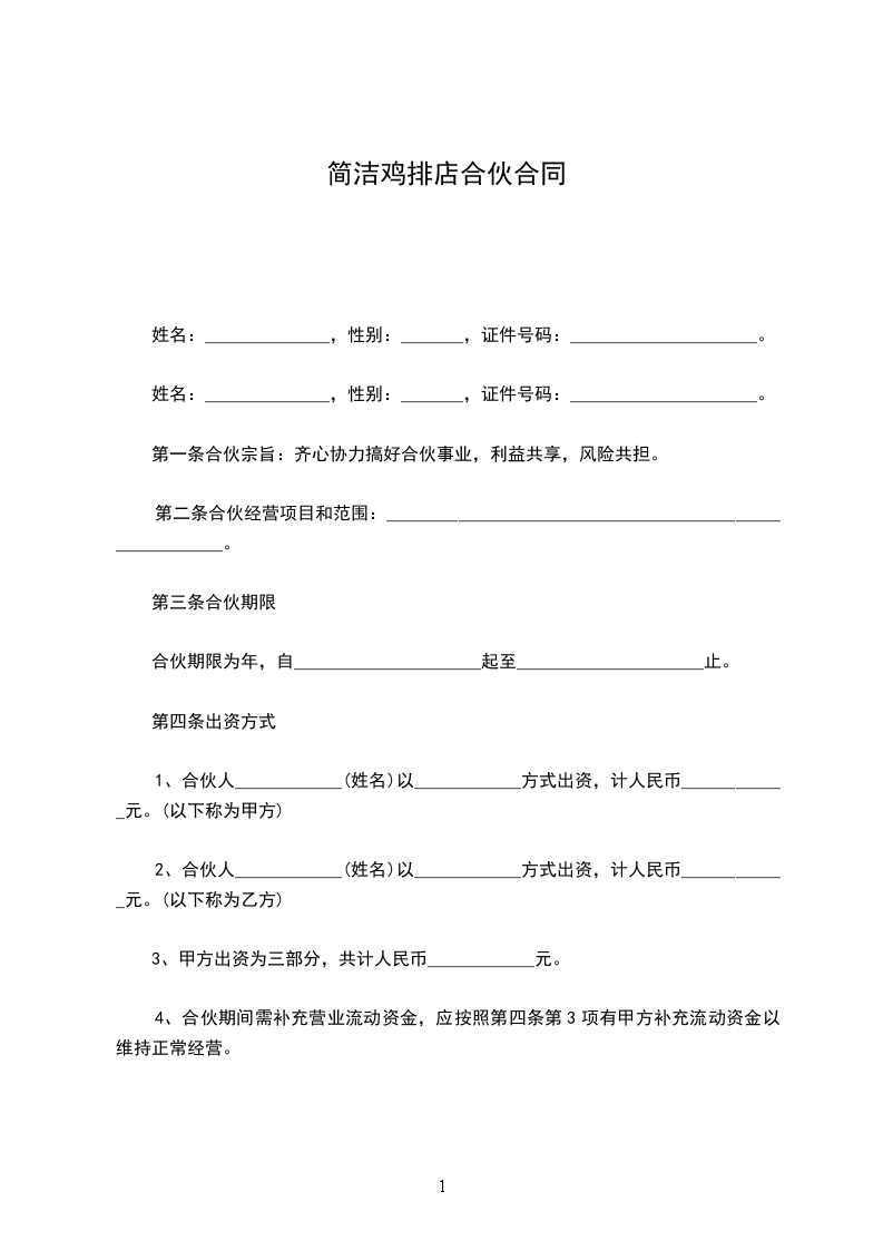 第一条:合伙宗旨:共同合伙,合法经营,利益共享,风险共担。