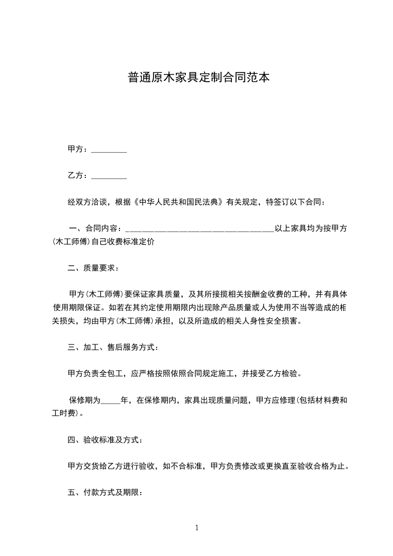 一、合同内容:____________________________________以上家具均为按甲方(木工师傅)自己收费标准定价