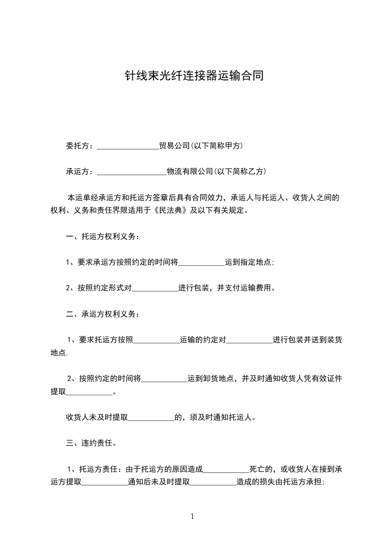 1、要求承运方按照约定的时间将____________运到指定地点;