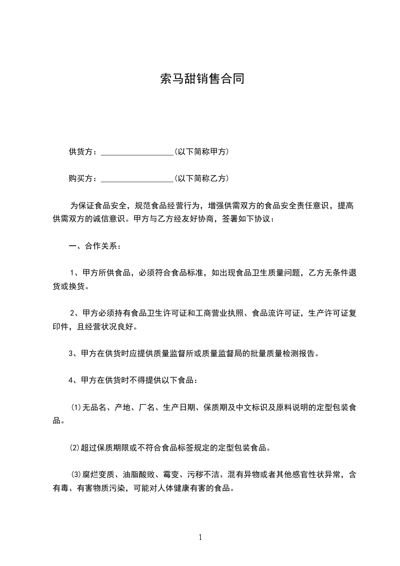 为保证食品安全,规范食品经营行为,增强供需双方的食品安全责任意识,提高供需双方的诚信意识。甲方与乙方经友好协商,签署如下协议: