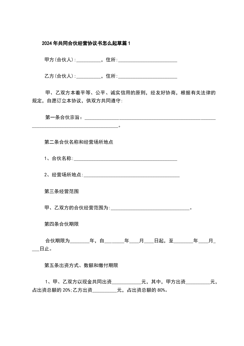 甲、乙双方经平等、自愿友好协商就合伙经营____________有关事宜达成如下协议:
