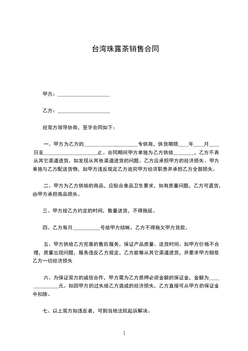 一、甲方为乙方的_____________________专供商,供货期限____年____月____日至_____________________止。合同期间甲方单独为乙方供给________,乙方不再从其它渠道进货,如发现从其他渠道进货的问题。乙方应承担甲方的经济损失。甲方单独与乙方配送货物,如甲方违反规定乙方追究甲方经济职责并承担乙方全部损失。