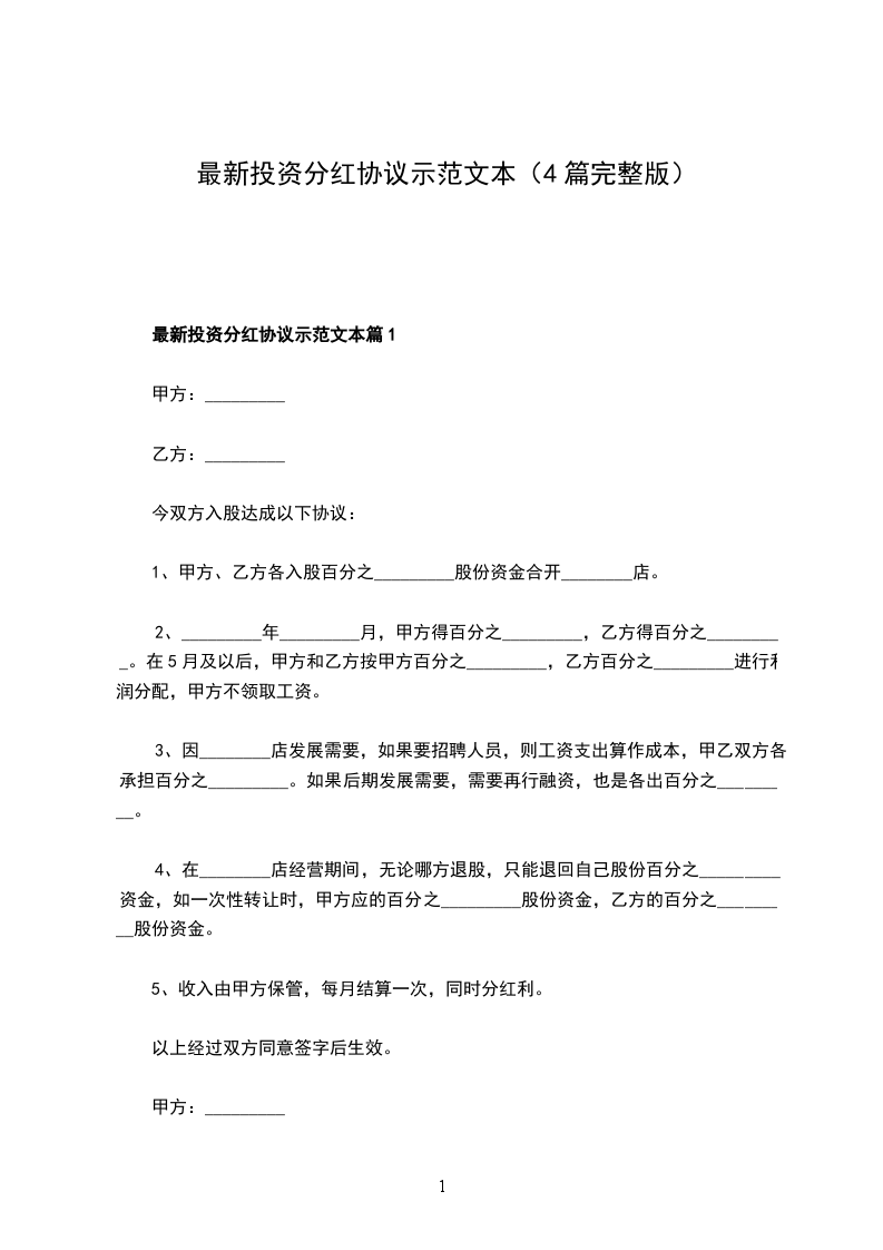 投资分红协议范本模板篇1