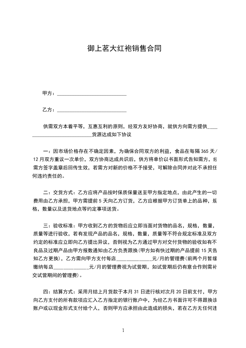 一:因市场价格存在不确定因素,为确保合同双方的利益,食品在每隔365天/12月双方重议一次单价,双方协商达成共识后,供方将单价以书面形式告知需方,经需方签字盖章后回传生效,若需方对新的价格不予接受,可解除合同并对此不承担任何违约责任的。