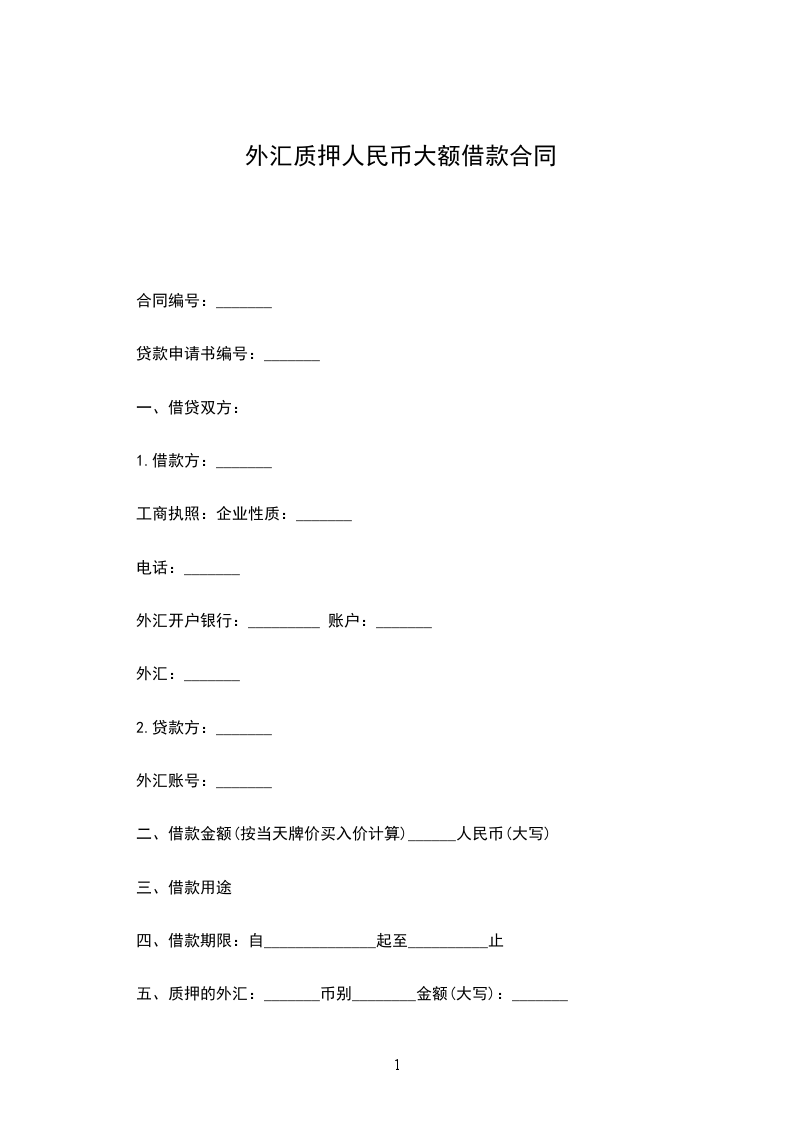 五、质押的外汇:_______币别________金额(大写):