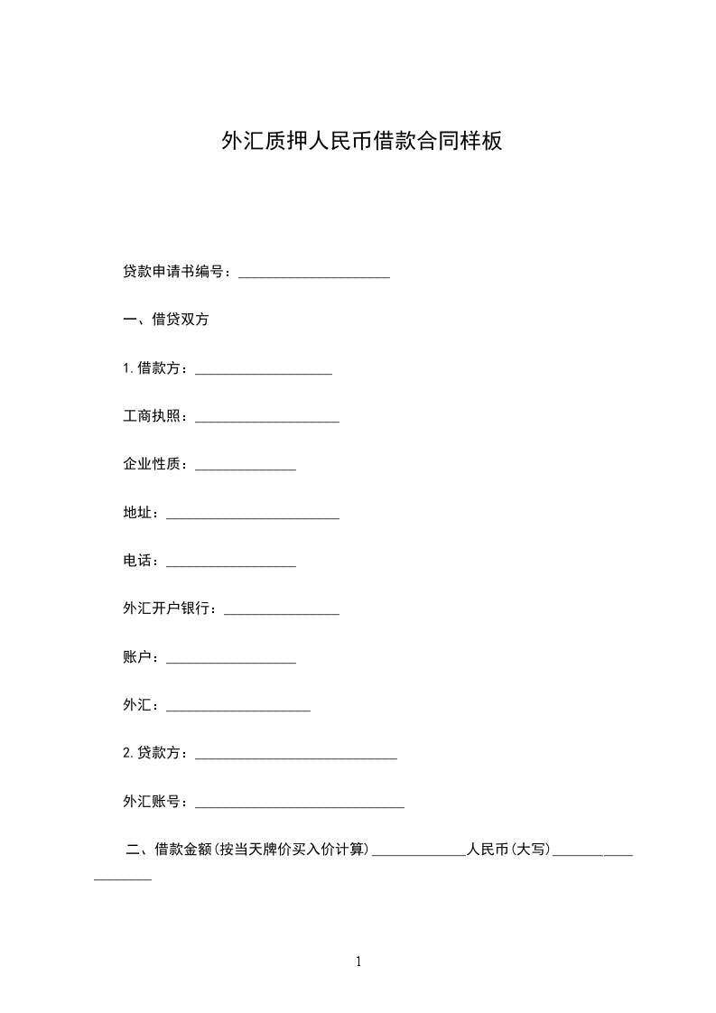 二、借款金额(按当天牌价买入价计算)______人民币(大写)