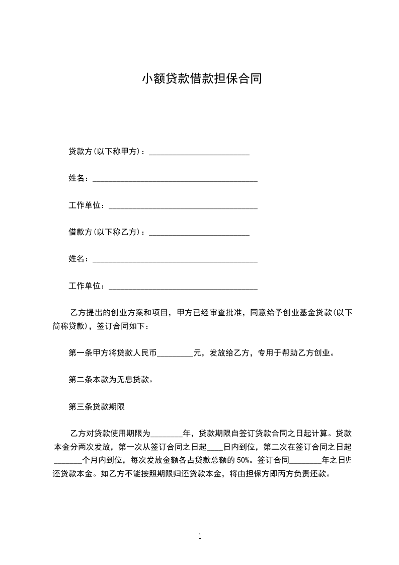 第一条甲方将贷款人民币_________元,发放给乙方,专用于帮助乙方创业。