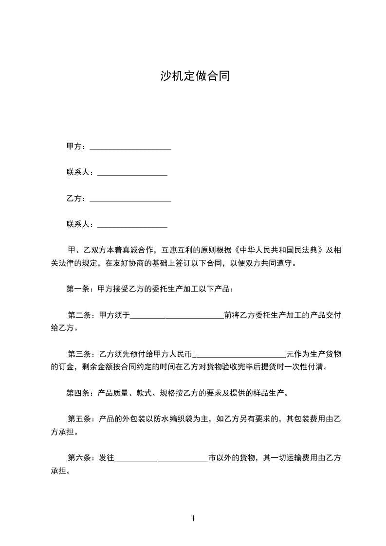 一、在每次生产前,甲需开立具体的托加工订单,其一般条款由本协议规定,补充条款在订单中说明,经双方确认签字盖章后生效。