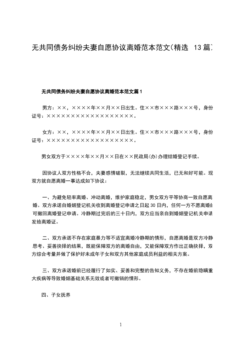 无共同债务纠纷夫妻自愿协议离婚范本篇13