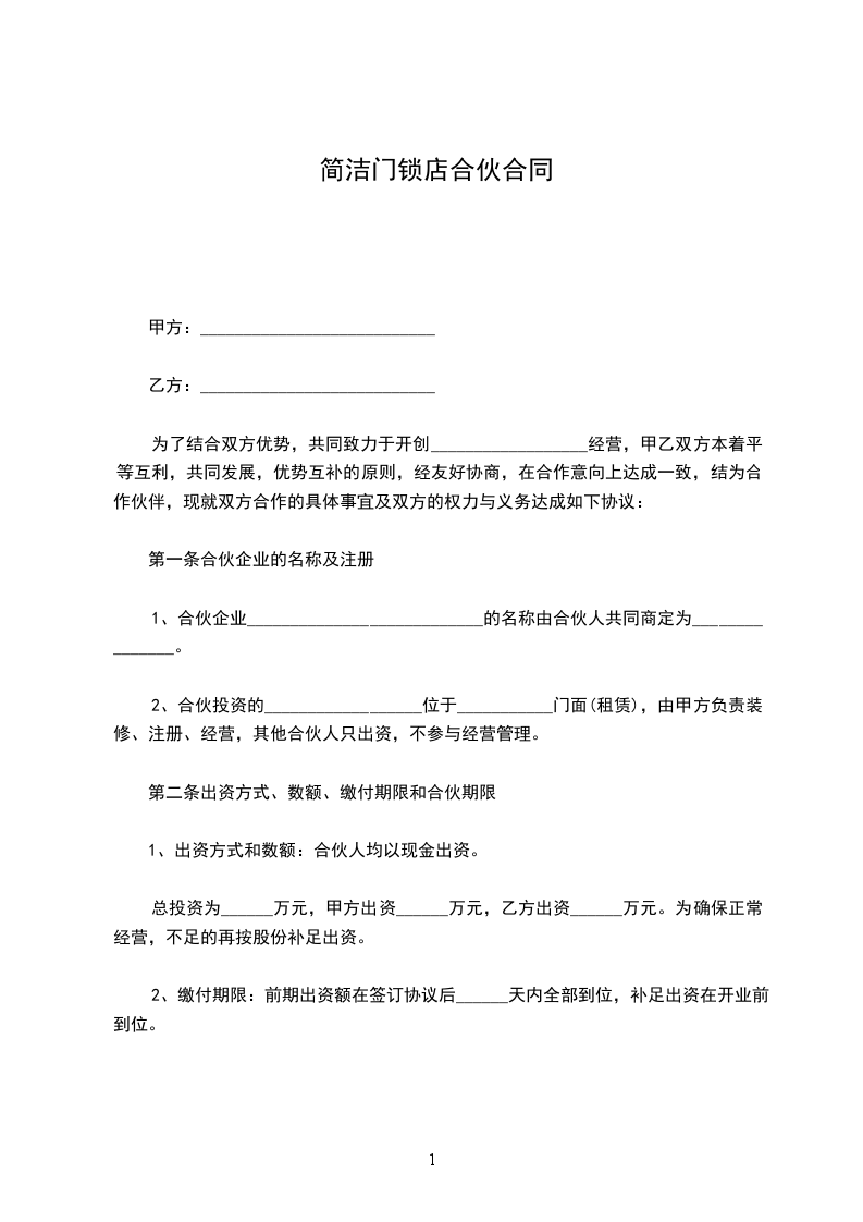 3、合伙期限:本次合伙期限为____年,以__________________租赁合同期限为准。合同到期,合伙人同意合伙续租,没有另签合伙协议时,按本协议继续执行。