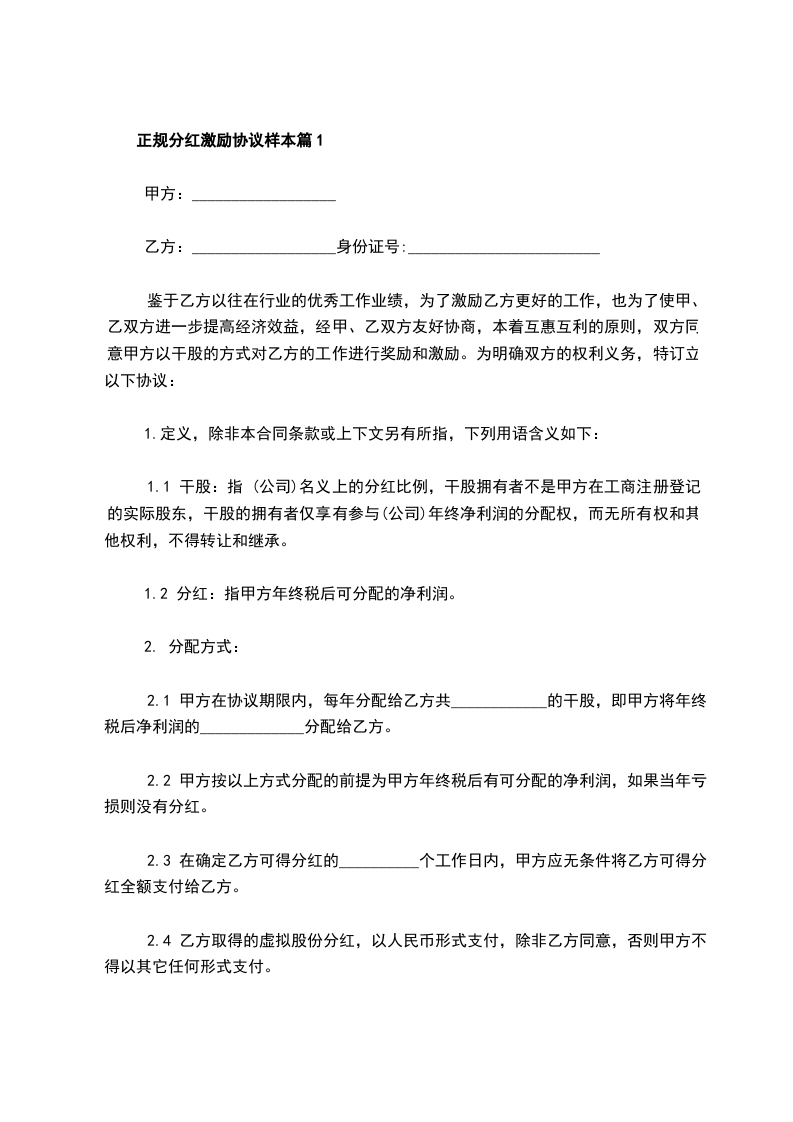 甲方为激励人才,增强责任感,以拓展市场,发展业务,现同意以让渡部分干股(分红权)的方式作为对乙方的激励措施;经甲乙双方经协商,特订立本协议,以资恪守: