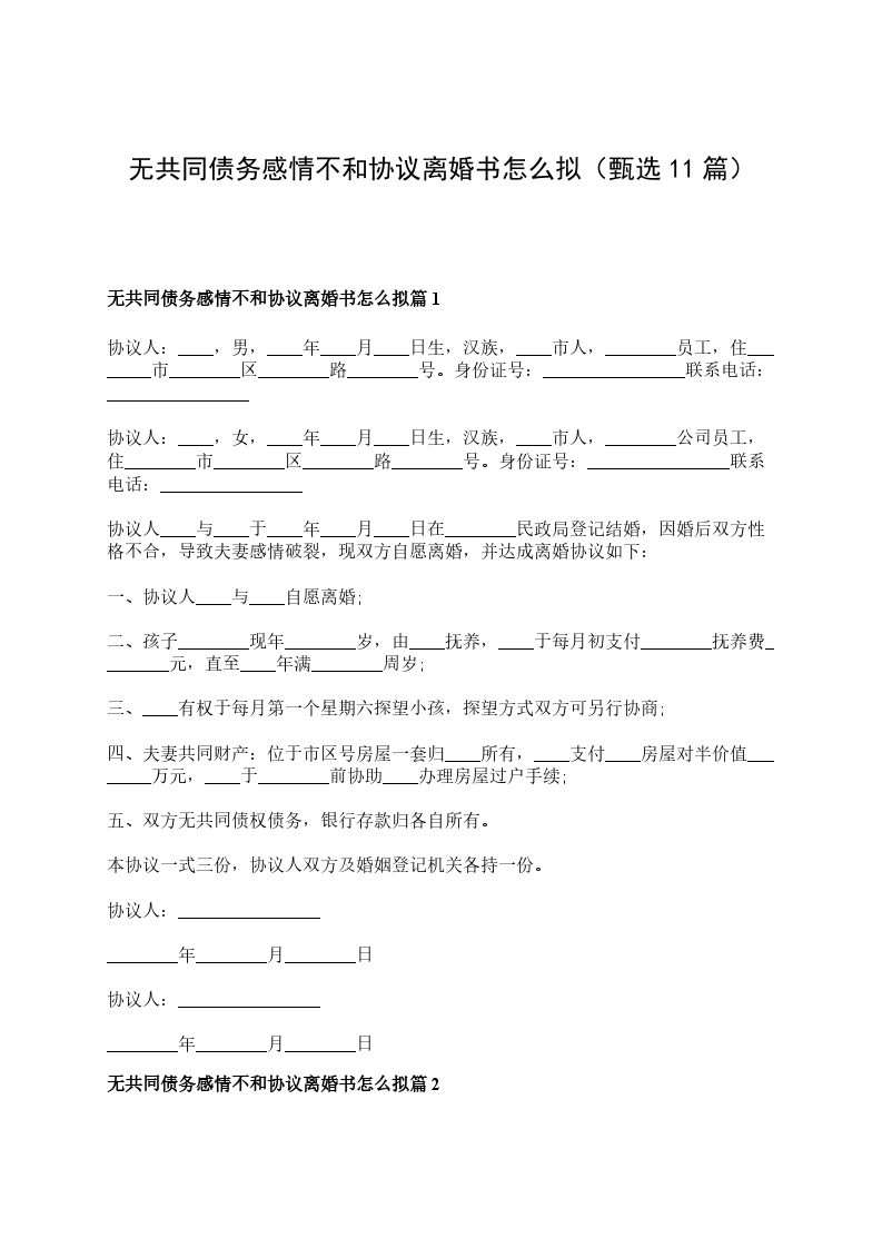 1、甲乙双方确认在婚姻关系存续期间没有发生共同债务。