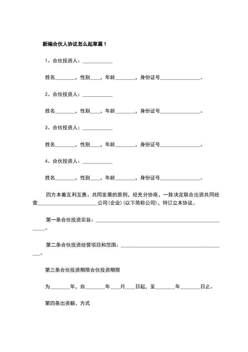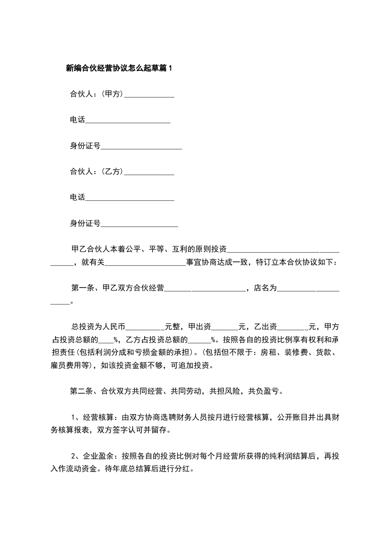 新编合伙经营协议怎么起草篇1