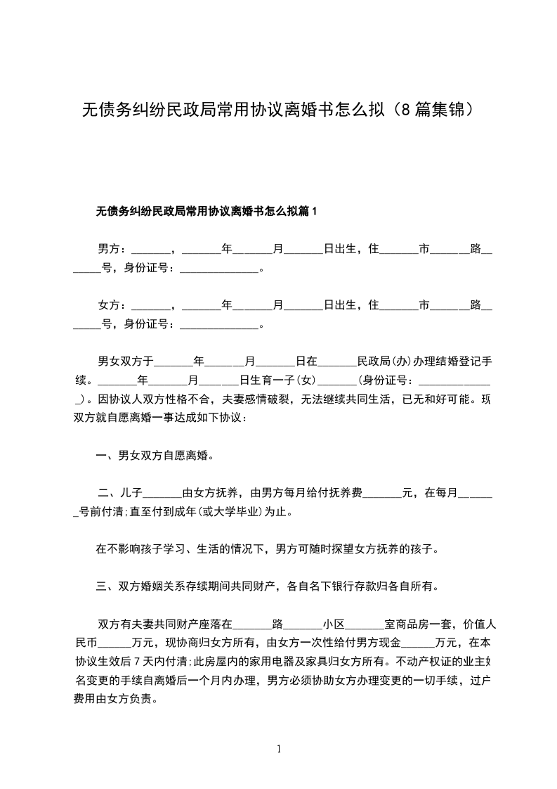 无共同债务纠纷民政局离婚协议书怎么拟篇8