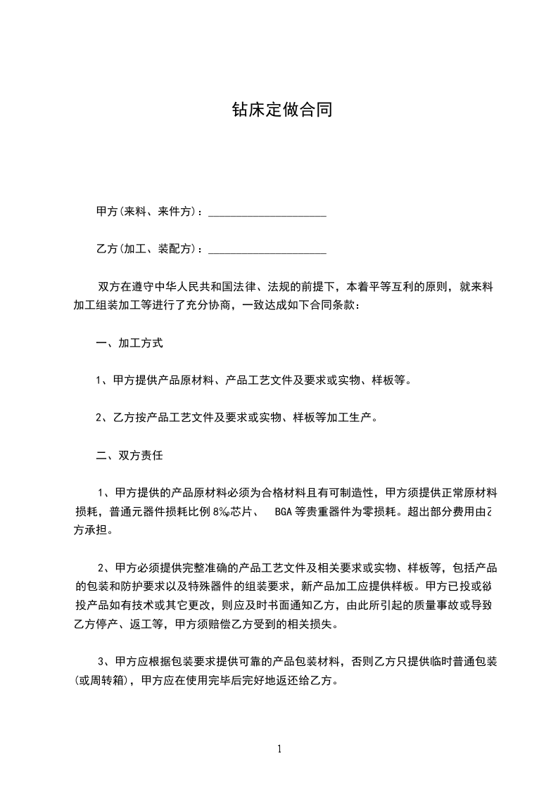 乙方(加工、装配方):_____________________