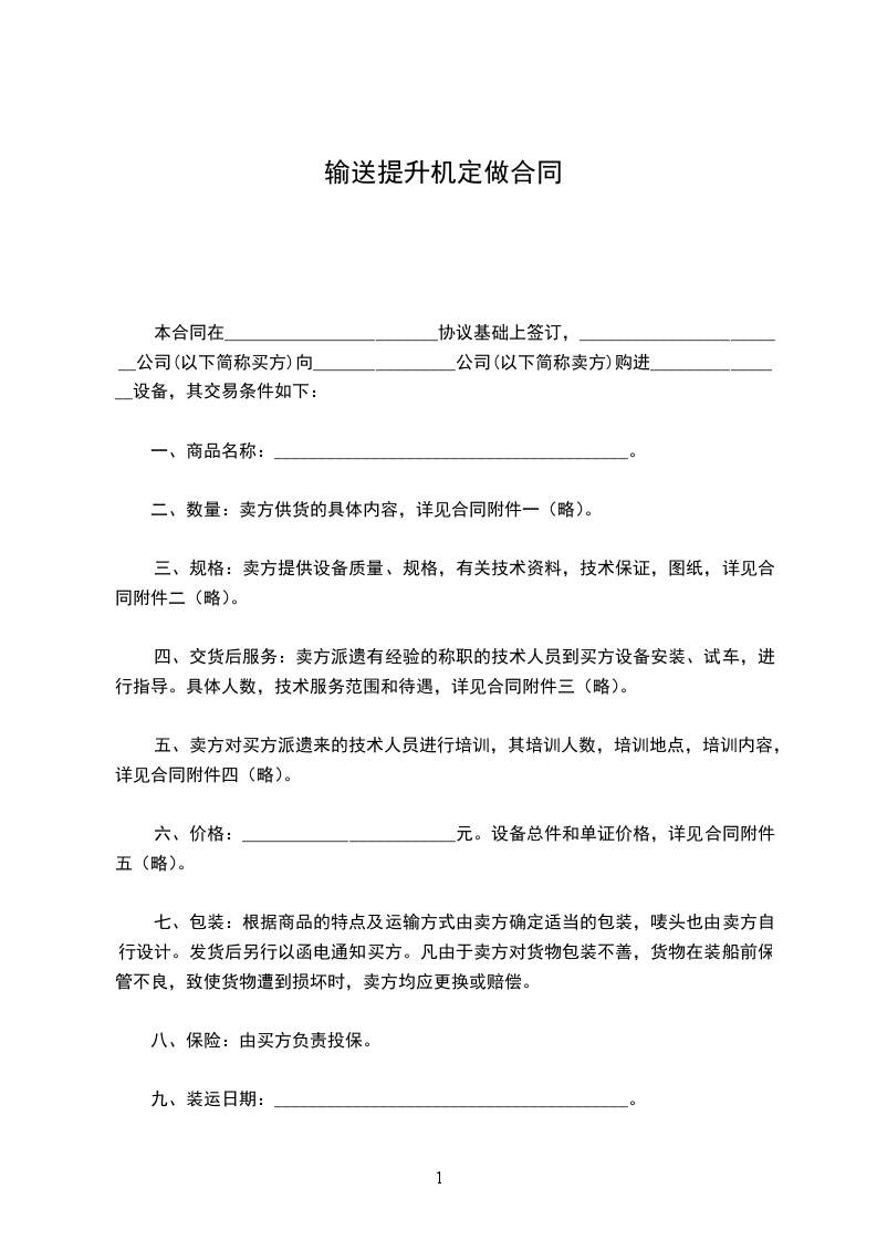 本合同在________________________协议基础上签订,________________________公司(以下简称买方)向________________公司(以下简称卖方)购进________________设备,其交易条件如下: