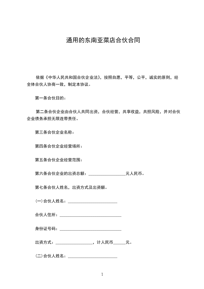 (一)合伙人姓名:________________________